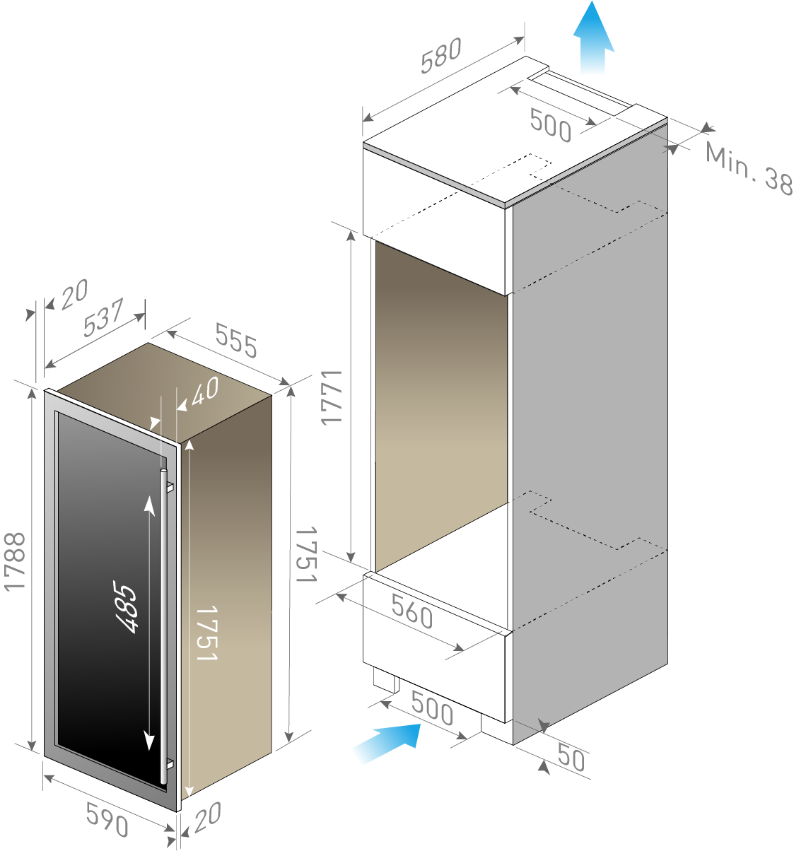 • Hueco de 178 cm: Altura de montaje en el espacio de un armario columna.