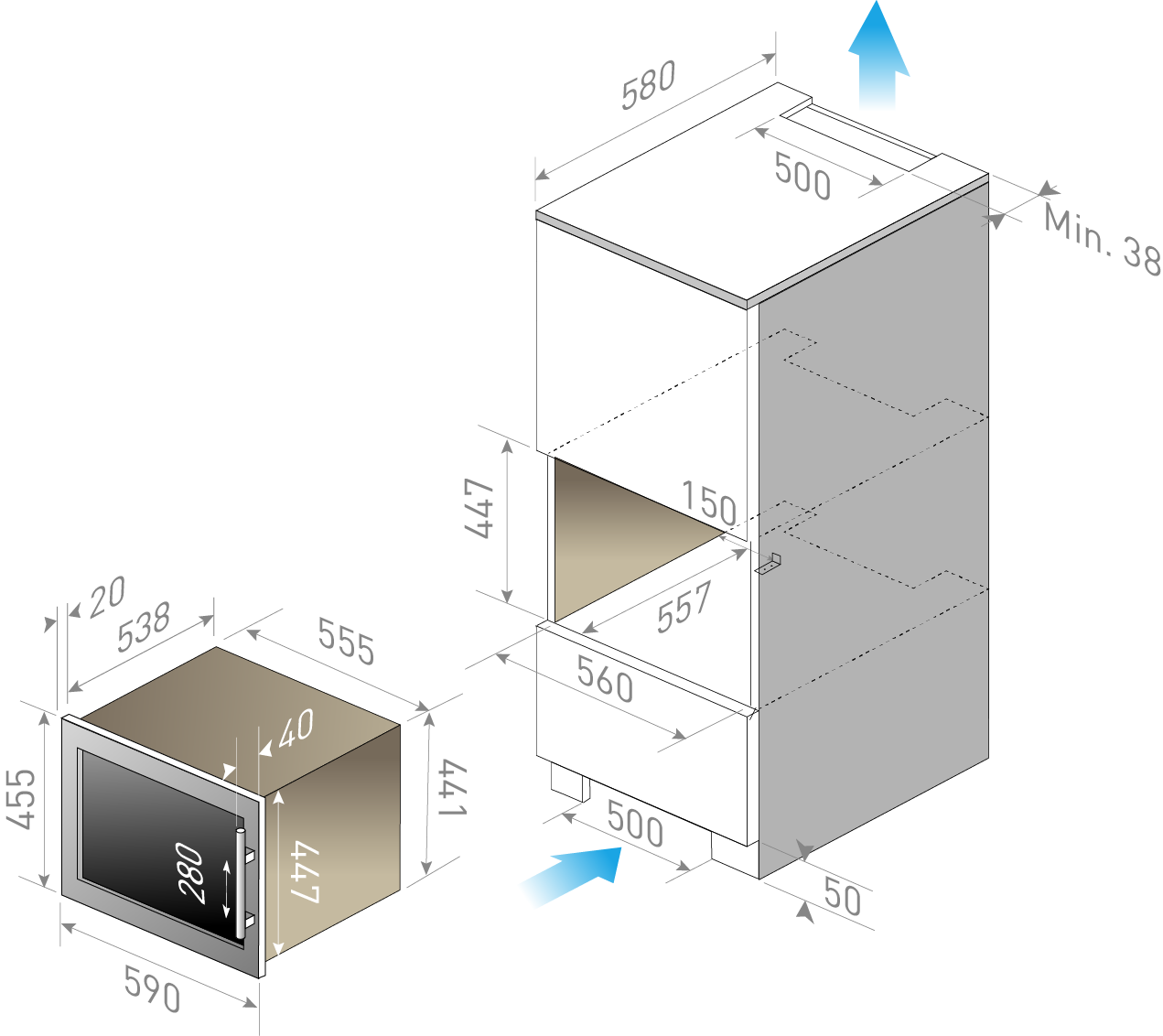 Niche 45 cm : Hauteur d’encastrement dans une niche de meuble colonne.